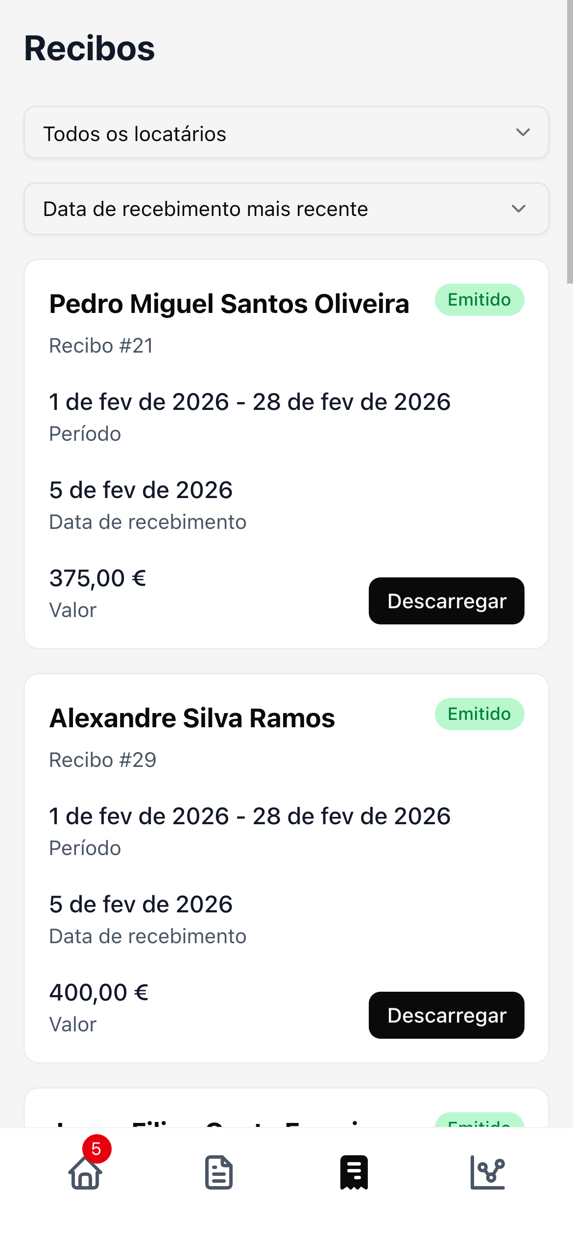 A possibilidade de emitir recibos para vários inquilinos de uma só vez é um salva-vidas. Poupa-me muito tempo.
